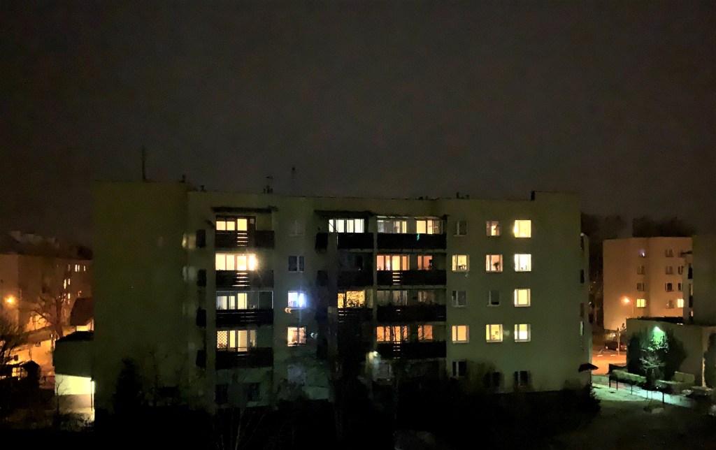 Uwielbiałam to zawsze, od dzieciństwa. Zaglądać do domów przez okna, uspokojona że świat trwa, cywilizacja jeszcze się rozwija w tych garnkach, na kanapach i pod pierzynami. Że jesteśmy bezpieczni. Nie wiem, może to efekt dorastania w czasach PRL, z radziecką paranoją wojny nuklearnej wywołanej przez Zachód. Może to Czarnobyl który zawsze był gdzieś w tle, w plotkach, szeptach, rozmowach na spotkaniach towarzyskich zakrapianych koniaczkiem, z obowiązkową obecnością szarpanego kurczaka w galarecie podawanego w malutkich porcelanowych filiżankach w zielone kwiatki.
